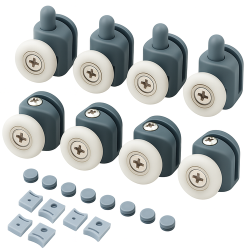 Zestaw górnych i dolnych kółek jest idealny do łatwego i płynnego otwierania kabin prysznicowych. Kółka wykonane są z trwałego plastiku i metalu, odpornego na korozję, i pasują do większości kabin prysznicowych. System umożliwia szybką wymianę, łatwy montaż oraz wyjęcie szkła do czyszczenia bez demontażu rolek.
