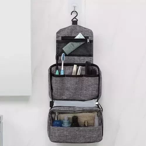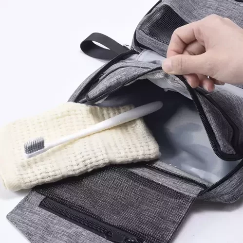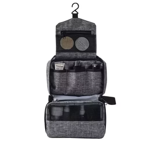 Torba podróżna zapewnia praktyczne i uporządkowane przechowywanie kosmetyków i akcesoriów podczas podróży, wyjazdów służbowych lub biwakowania. Dzięki haczykowi torbę można zawiesić i mieć wszystkie rzeczy pod ręką, wodoodporny materiał chroni zawartość podczas prysznica i wilgoci. Zamek błyskawiczny i uchwyt umożliwiają wygodne otwieranie, zamykanie i przenoszenie.