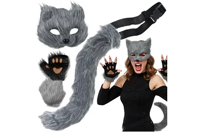 • Komplet 4 w 1 – maska, ogon, łapki / rękawice