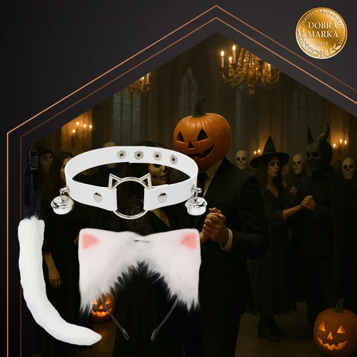 • Kompletny zestaw 3 w 1 – ogon, opaska z uszami, naszyjnik