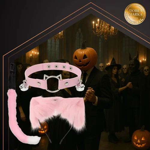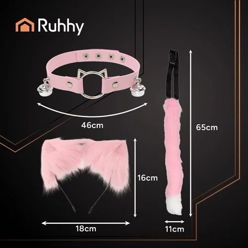 • Kompletny zestaw 3 w 1 – ogon, opaska z uszami, naszyjnik