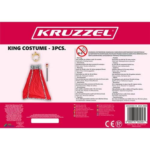 Królewski kostium z peleryną, berłem i koroną pozwoli każdemu stać się prawdziwym władcą. Powiewająca czerwona peleryna z czarno-białym futrem, majestatyczne berło z czerwonym kamieniem szlachetnym i korona ozdobiona kolorowymi kryształami tworzą niezapomnianą aurę autorytetu i elegancji. Idealny na imprezy kostiumowe, przedstawienia teatralne, urodziny lub szkolne wydarzenia.