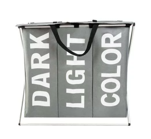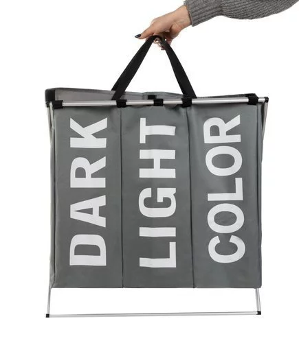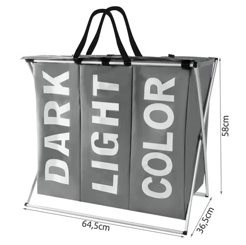 Przestronny i praktyczny kosz na pranie ułatwi Ci segregację brudnych ubrań od samego początku. Dzięki trzem oddzielnym przegrodom możesz oddzielić ciemne, jasne i kolorowe pranie oraz zaangażować innych członków rodziny. Wodoodporne wnętrze chroni zewnętrzną część kosza przed zabrudzeniem, a solidna rama zapewnia stabilność. Dzięki nowoczesnej białoszarej kombinacji stylowo wpasuje się w każde wnętrze.