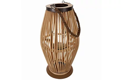 Naturalny dodatek, który wniesie do przestrzeni ciepło, spokój i atmosferę. Kombinacja bambusa, drewna i szkła działa lekko, ale jednocześnie stabilnie i ponadczasowo. Delikatnie rozproszone światło tworzy przytulny i romantyczny nastrój w domu, na tarasie i w ogrodzie. Dzięki praktycznemu uchwytowi z konopnego sznura latarnię można łatwo przenosić lub zawieszać i dostosować do różnych typów aranżacji.