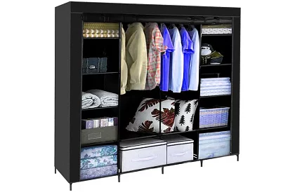 Praktyczna szafa materiałowa w rozmiarze XXL oferuje przestronną przestrzeń do przechowywania na odzież, tekstylia i akcesoria bez konieczności zakupu tradycyjnych mebli. Dzięki lekkiej konstrukcji, łatwemu montażowi i mobilnemu wykonaniu nadaje się do mieszkania, domu, na działkę oraz jako tymczasowe rozwiązanie podczas przeprowadzki. Zamek na zip chroni zawartość przed kurzem, wilgocią i zapachami oraz pomaga utrzymać porządek.