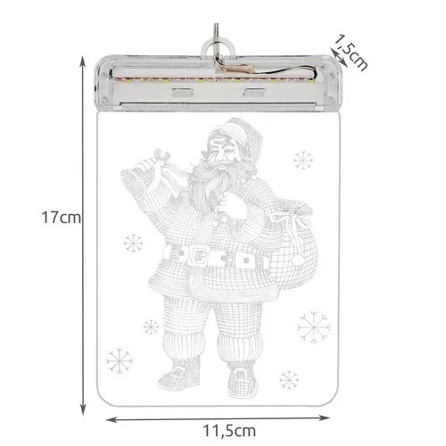 Przynosi świąteczną atmosferę do każdego domu dzięki dwustronnemu designowi, który wygląda pięknie zarówno z zewnątrz, jak i wewnątrz. Witrażowa deska jest wykonana z trwałego plastiku z precyzyjnym grawerowaniem laserowym, które podkreśla szczegółowy motyw Świętego Mikołaja. Zasilanie bateryjne umożliwia umieszczenie dekoracji praktycznie wszędzie bez ograniczeń związanych z kablami lub źródłem energii elektrycznej. Witraż jest uniwersalny, posłuży nie tylko jako dekoracja świąteczna, ale także jako lampka nocna, tworząca przyjemną atmosferę, na przykład w pokoju dziecięcym. Dzięki praktycznemu przyssawce montaż jest prosty i dyskretny, dekoracja nie zakłóca ogólnego wyglądu okna.