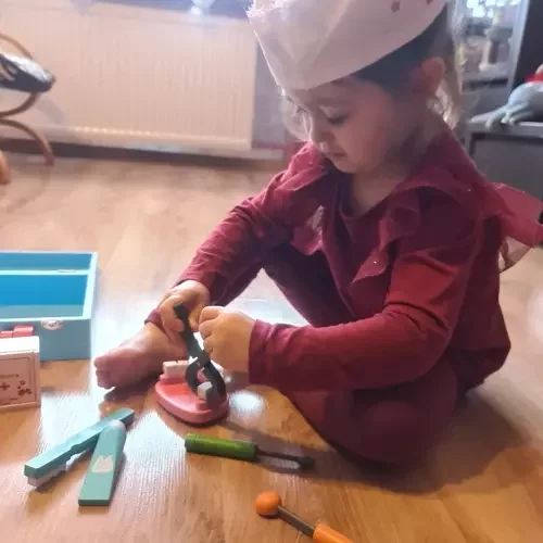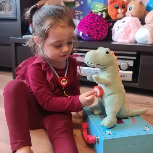 Zabawny i bogato wyposażony zestaw medyczny, który pozwala dzieciom zajrzeć do świata lekarzy w zabawny i naturalny sposób. Dzięki realistycznym akcesoriom dzieci mogą bawić się w opiekę nad lalkami, pluszakami i rodzicami, rozwijać wyobraźnię, małą motorykę i uczyć się podstaw opieki zdrowotnej. Drewniane wykonanie zapewnia trwałość, bezpieczeństwo i ponadczasowy wygląd.