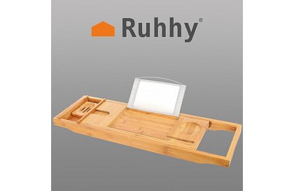 Półka została zaprojektowana tak, aby w pełni zapewniała komfort i funkcjonalność podczas kąpieli. Ma metalowy uchwyt na tablet/książkę z 3 stopniami rozstawu (uchwyt można zdemontować). Specjalne miejsce przeznaczone jest na kieliszek wina. W zestawie znajduje się wyjmowana wkładka na ręcznik, miska na mydło, miejsce na telefon oraz wnęka na świecę lub zapach. Dzięki temu, że półka jest wysuwana i jej długość można dowolnie regulować, będzie działać praktycznie w każdej wannie, niezależnie od jej rozmiaru czy kształtu.