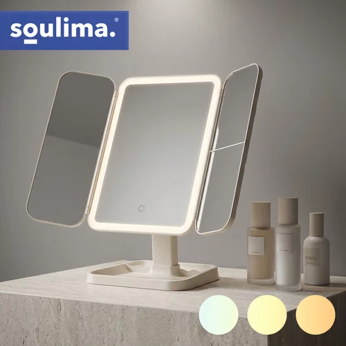 Lusterka kosmetyczne oferują kompleksowy widok na twarz i fryzurę dzięki trójczłonowej konstrukcji z centralnym lustrem i dwoma bocznymi skrzydłami. Prawe boczne lustro z powiększeniem 2x i 3x umożliwia precyzyjne poprawki linii oczu, brwi i innych detali makijażu. Wbudowane oświetlenie LED z regulowaną temperaturą barwową 3000–7000 K zapewnia komfortowy makijaż w różnych warunkach oświetleniowych i wierne odwzorowanie kolorów. Dzięki obrotowi o 270° i regulowanemu kątowi nachylenia lustro jest wygodne w użyciu zarówno w pozycji siedzącej, jak i stojącej. Stylowa, diamentowo pikowana przednia strona chroni szkło i działa jako elegancki element dekoracyjny. Wbudowana bateria 600 mAh z ładowaniem USB-C umożliwia elastyczne użytkowanie bez ciągłego podłączania do sieci.