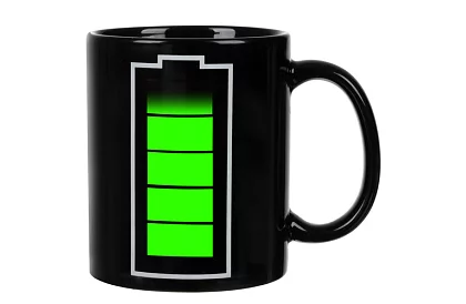 Oryginalny ceramiczny kubek, który ożywa po nalaniu gorącego napoju i zamienia każdą filiżankę kawy lub herbaty w małe przeżycie. Gdy do kubka wlejesz gorącą ciecz, ikona baterii zaczyna stopniowo „ładować się” i zmienia kolor, dzięki czemu dokładnie widzisz, jak gorący jest napój. Stylowy design, zabawny efekt i praktyczne zastosowanie sprawiają, że ten kubek jest idealnym dodatkiem na biurko oraz świetnym prezentem.