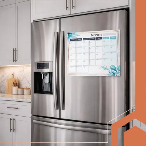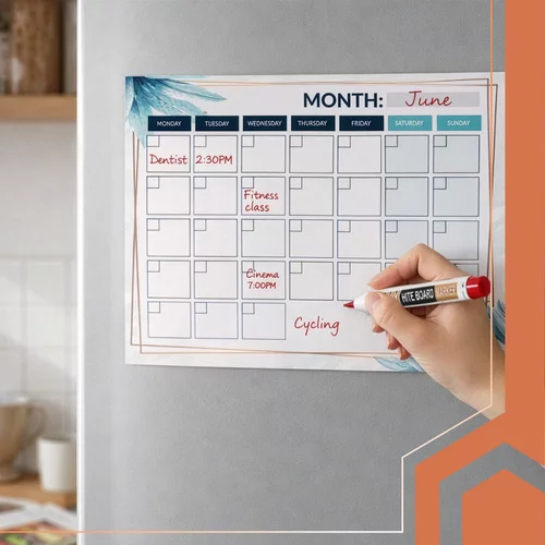 Przejrzyste planowanie codziennych zadań i programu rodzinnego jest łatwe dzięki dużemu magnetycznemu plannerowi z praktyczną powierzchnią do ścierania. Umożliwia szybkie zapisywanie notatek, list zakupów i ważnych terminów bez zbędnego chaosu. Dzięki umiejscowieniu na lodówce jest zawsze na widoku, co pomaga poprawić organizację czasu i zmniejszyć codzienny stres. Elastyczny układ i wystarczająca ilość miejsca dają pełną kontrolę nad planowaniem.