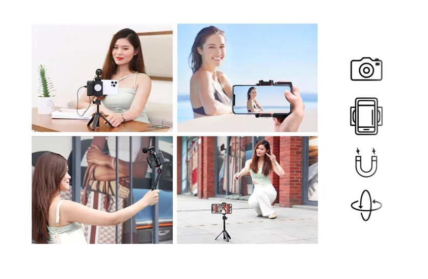 Magnetyczny uchwyt na telefon to najlepsze rozwiązanie do łatwego robienia pięknych zdjęć i filmów! Dzięki eleganckiej i kompaktowej konstrukcji to innowacyjne urządzenie jest idealne dla każdego, kto lubi robić zdjęcia w podróży. Jedną z najlepszych cech tego aparatu jest poręczny spust migawki. Za pomocą jednego naciśnięcia możesz łatwo zrobić idealne zdjęcie, bez konieczności zawracania sobie głowy przyciskiem aparatu w telefonie. Idealnie nadaje się zatem do robienia selfie, zdjęć grupowych, a nawet ujęć akcji.