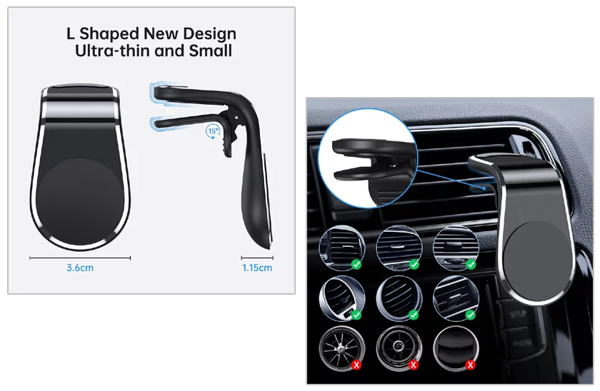 Nie wiesz, gdzie umieścić telefon komórkowy w samochodzie, aby zawsze mieć wgląd w to, kto próbuje się z Tobą połączyć lub dobrze widzieć nawigację? Uchwyt na telefon Swissten EASY HOLDER można łatwo umieścić na kratce wentylacyjnej bez użycia klejów lub śrub, które mogłyby pozostawić ślady po usunięciu. Dodatkowo uchwyt ma elegancki metalowy design, który nie zepsuje wnętrza pojazdu. Bezpieczeństwo telefonu zapewnia pięć magnesów pokrytych gumą, co zapobiega porysowaniu telefonu, a telefon nie ma szans ślizgać się po gumie. Szczęka uchwytu wraz z podkładką nano zapobiega niezamierzonemu wysunięciu się z siatki.