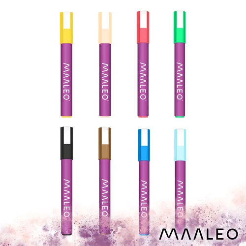 Markery akrylowe MAALEO zawierają prawdziwą farbę akrylową, a nie klasyczny tusz na bazie wody. Dzięki temu zapewniają silne pokrycie, intensywne kolory i wysoką odporność na różnych powierzchniach. Są idealne do malowania, ozdabiania i projektów kreatywnych – od kamieni po szkło lub drewno.