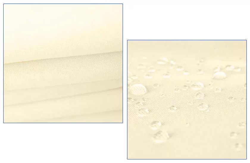 Gęsto tkany materiał skutecznie blokuje promienie słoneczne i obniża temperaturę pod powierzchnią, jednocześnie zapewniając cyrkulację powietrza. Dzięki temu tworzy przyjemne warunki nawet w upalne dni. Materiał jest wodoodporny, szybko schnący i odporny na wilgoć oraz pleśń – niespodziewany deszcz nie będzie już problemem.