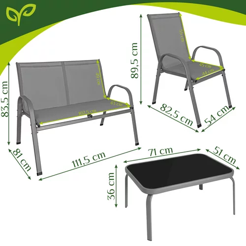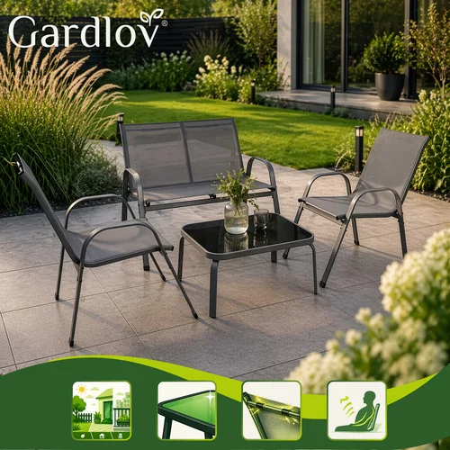 Stylowy zestaw mebli ogrodowych to idealny wybór do wygodnego wypoczynku w ogrodzie, na tarasie i balkonie. Czteroosobowy zestaw zawiera kanapę, dwa fotele i stolik, co zapewnia wystarczająco miejsca na spotkania z rodziną lub przyjaciółmi. Nowoczesny design w szarym kolorze łatwo wkomponuje się w przestrzeń zewnętrzną, jednocześnie nadając otoczeniu elegancki wygląd. Solidna konstrukcja i odporne materiały zapewniają długą żywotność i komfort użytkowania.