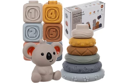 Miękkie sensoryczne bloki oferują dzieciom zabawę i rozwój zmysłów. Wspierają motorykę małą, myślenie logiczne i koordynację oko-ręka i jednocześnie stymulują dotyk, słuch i wzrok. Zabawki są wykonane z bezpiecznego miękkiego PVC, miękkie i elastyczne, idealne do ściskania, ugniatania i gryzienia. Delikatne kolory przyczyniają się do uspokojenia dziecka i ułatwiają wczesne poznawanie świata poprzez zabawę.