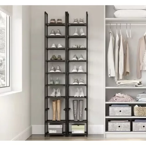 Praktyczny i modułowy stojak na buty oferuje stabilną przestrzeń do przechowywania dla aż 10 par butów. Lekka konstrukcja umożliwia łatwą obsługę, podczas gdy wytrzymałe materiały zapewniają długą żywotność. Modułowy design pozwala dostosować konfigurację półek do dostępnej przestrzeni i stylu wnętrza, co czyni stojak na buty idealnym do małych i przestronnych mieszkań.