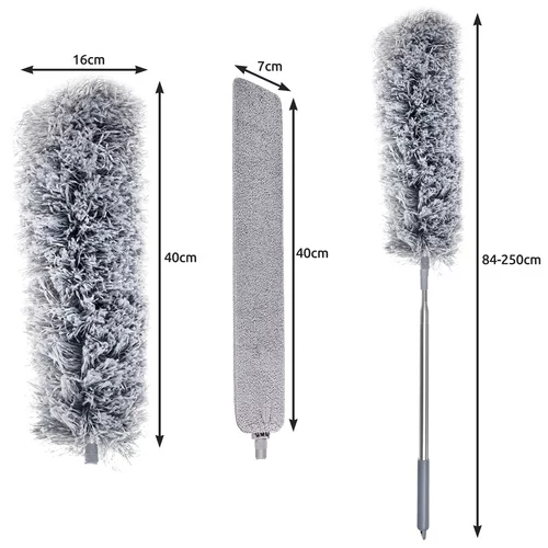 • Materiał teleskopowego uchwytu: stal nierdzewna + PP, szczotki: pleciona mikrofibra i włókno poliestrowe