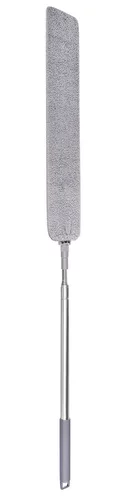 Praktyczny teleskopowy mop z wymiennymi końcówkami ułatwia sprzątanie nawet w najtrudniej dostępnych miejscach. Dzięki regulowanemu teleskopowi od 84 cm do 250 cm wygodnie sięgniesz do sufitu, za szafki lub pod meble, nie musząc wspinać się po drabinie. Zestaw zawiera podłużną szczotkę do płaskich powierzchni i szczelin oraz okrągłą szczotkę do dokładnego usuwania kurzu i pajęczyn. Elastyczna konstrukcja pozwala na zginanie szczotki, dzięki czemu sięgniesz naprawdę wszędzie.