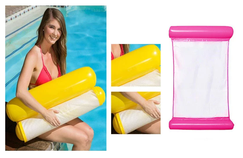 Docenisz wygodny leżak w wodzie, który zapewni wspaniały odpoczynek latem. Możesz zrelaksować się na leżaku, a będzie on przyjemnie unosić się na wodzie. Dzięki siatce, która służy jako siedzisko i jest umieszczona pomiędzy dwiema napompowanymi komorami, ciało zanurzysz się w wodzie, a głowę i nogi oprze się leżak nad wodą. Z leżakiem możesz cieszyć się niezakłóconymi chwilami w wodzie. Leżak, który przyjemnie unosi się na wodzie, może służyć do przyjemnej rozrywki.
