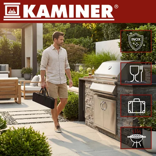 Kompletny zestaw narzędzi do grillowania w solidnej walizce uporządkuje wszystko w jednym miejscu. Dzięki długim uchwytom utrzymuje się bezpieczną odległość od ciepła, podczas gdy każde narzędzie ma swoje zawieszenie i elastyczny uchwyt, dzięki czemu wszystko jest przejrzyste i szybko dostępne. Satynowe uchwyty zapewniają wygodny chwyt, a dzięki certyfikatowi LFGB przygotowanie jedzenia jest bezpieczne i higieniczne.