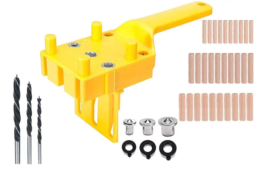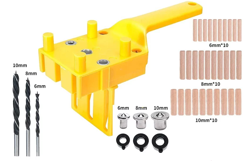 Przydatny gadżet do przypinania. Dzięki temu kołkowi każdy majster będzie miał znacznie mniej pracy. Stosowany jest głównie do łatwej produkcji złącza sworzniowego. Prosty i szybki w użyciu. Będziesz go używać głównie do wiercenia otworów na kołki w celu połączenia dwóch płytek. Ten kołek można wykorzystać dalej, jeśli chcesz wykonać kilka otworów w tej samej odległości od krawędzi materiału. Wykorzystując otwór środkowy, można szybko wykonać otwór na środku krawędzi deski za pomocą wystających kołków na kołku. Trzpień posiada uchwyt ułatwiający obsługę.