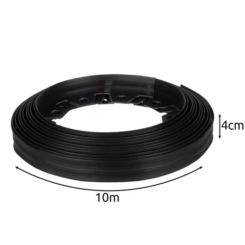 Utrzymuj ogród uporządkowany i zorganizowany z elastycznym obrzeżem, które skutecznie oddziela trawnik od rabat, ścieżek lub dekoracyjnych powierzchni. Dzięki wytrzymałemu materiałowi wytrzymuje nawet w trudnych warunkach, takich jak mróz, deszcz czy promieniowanie słoneczne, i pozostaje stabilne nawet w mniej twardym terenie. Łatwa instalacja bez specjalnych narzędzi oraz możliwość dostosowania długości pozwala na tworzenie prostych linii, okręgów lub krzywych zgodnie z potrzebami ogrodu. Zestaw zawiera wszystko, co potrzebne do natychmiastowej instalacji, w tym mocne kołki.