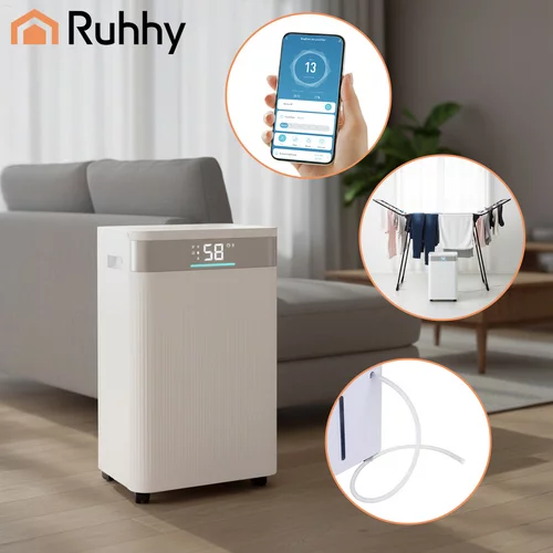 Utrzymuj zdrowy klimat bez pleśni, wilgoci i stęchłego zapachu. Wydajny osuszacz o pojemności do 20 litrów dziennie skutecznie osusza pomieszczenia, chroni meble i ściany, a jednocześnie oferuje nowoczesne sterowanie za pomocą aplikacji mobilnej. Cicha praca, duży zbiornik i tryb suszenia prania czynią z urządzenia praktycznego pomocnika w domu i biurze.