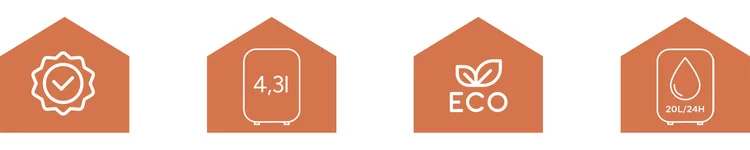 • Duży zbiornik 4,3 l rzadsze opróżnianie wody