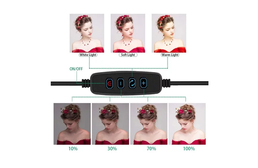 Okrągłe światło LED jest idealne dla każdego, kto lubi robić zdjęcia lub nagrywać filmy w sieciach społecznościowych. Wypełnia cienie na twarzy, rozjaśnia skórę i poprawia jakość uzyskanego zdjęcia lub filmu.