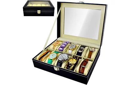 Eleganckie rozwiązanie dla bezpiecznego przechowywania, przejrzystej organizacji i stylowej prezentacji zegarków i biżuterii. Połączenie ochronnego wyściółki, praktycznego podziału i reprezentacyjnego wyglądu zapewnia wygodne codzienne użytkowanie oraz długoterminową ochronę akcesoriów. Odpowiednie do użytku domowego oraz jako gustowny prezent.