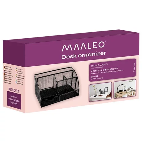 Praktyczny organizer biurkowy pozwoli Ci mieć wszystkie artykuły biurowe pod ręką i utrzymać porządek na biurku. Dzięki dużej i pięciu mniejszym przegródkom, szufladzie i półkom łatwo przechowasz długopisy, kredki, markery, gumki, spinacze, klej lub nożyczki. Organizer jest wytrzymały i solidny, więc wytrzyma długotrwałe użytkowanie w domu i biurze.