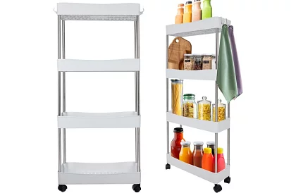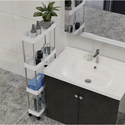 Praktyczny organizer na kółkach przynosi przejrzystość, mobilność i oszczędność miejsca do łazienki, kuchni i innych pomieszczeń. Lekka, ale solidna konstrukcja umożliwia łatwe przemieszczanie, podczas gdy modułowe rozwiązanie oferuje dostosowanie wysokości do aktualnych potrzeb. Elegancki wygląd uzupełnia dekoracyjne dno półek, które jednocześnie wspiera lepszą cyrkulację powietrza i higienę przechowywanych rzeczy.