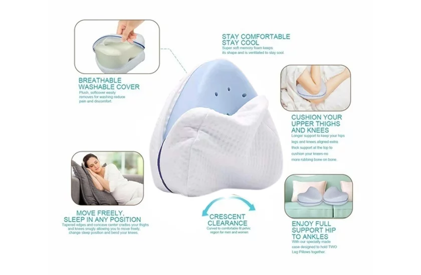 Ergonomiczna poduszka między kolanami wspiera prawidłowe ułożenie kręgosłupa podczas snu. Dzięki temu przynosi ulgę w bólach pleców i kręgosłupa. Zapewnia komfort podczas snu swoim kształtem korygującym prawidłową pozycję bioder i miednicy oraz dopasowującym się do naturalnej krzywizny nóg.