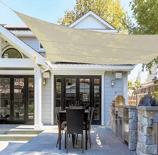 Stwórz przyjemny cień i ochłodzenie w gorące letnie dni. Elegancka beżowa plandeka zapewnia skuteczną ochronę przed słońcem i promieniowaniem UV, jednocześnie zachowując cyrkulację powietrza, dzięki czemu pod nią powstaje komfortowy klimat. Gęsto tkany materiał pomaga obniżyć temperaturę w zacienionej przestrzeni i zwiększa komfort podczas odpoczynku w ogrodzie, na tarasie czy balkonie.