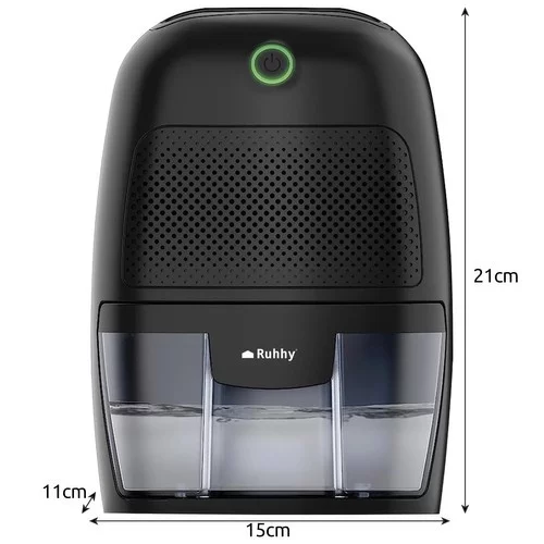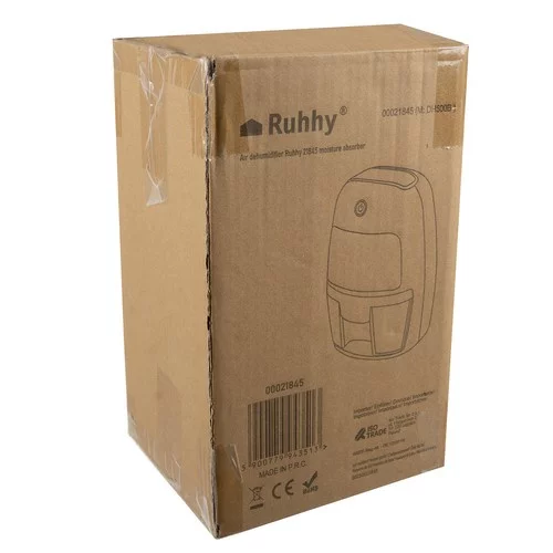Osuszacz RUHHY skutecznie usuwa nadmiar wilgoci z powietrza, zapobiega powstawaniu pleśni, grzybów i nieprzyjemnych zapachów. Nie wymaga chemikaliów ani wkładek, a jego pojemność do 300 ml dziennie zapewnia optymalną wilgotność w domu lub biurze. Dzięki cichej pracy nadaje się do sypialni i pokoi z dziećmi, a kompaktowe wymiary umożliwiają łatwe umieszczenie na stole, komodzie lub podłodze. Automatyczne wyłączenie po napełnieniu zbiornika i niskie zużycie energii zapewniają komfortową i oszczędną pracę.