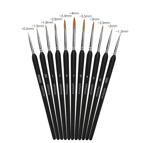 • Zestaw zawiera 11 pędzli – rozmiary 00000, 000, 00, 0, 1, 2, 3, 4, 5, 6, 7