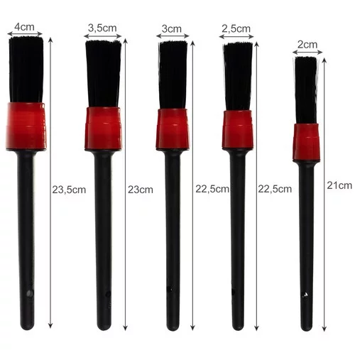 Zestaw 5 pędzli XTROBB pozwala na dokładne oczyszczenie każdego detalu twojego samochodu, motocykla lub przyczepy. Dzięki różnym średnicom szczotek dotrzesz do wszystkich szczelin, otworów wentylacyjnych i konsol centralnych. Włókna są syntetyczne, mocne, a jednocześnie delikatne dla powierzchni. W skład zestawu wchodzi również ściereczka z mikrofibry, która łatwo usuwa kurz i zanieczyszczenia, zapewniając doskonałe wykończenie.