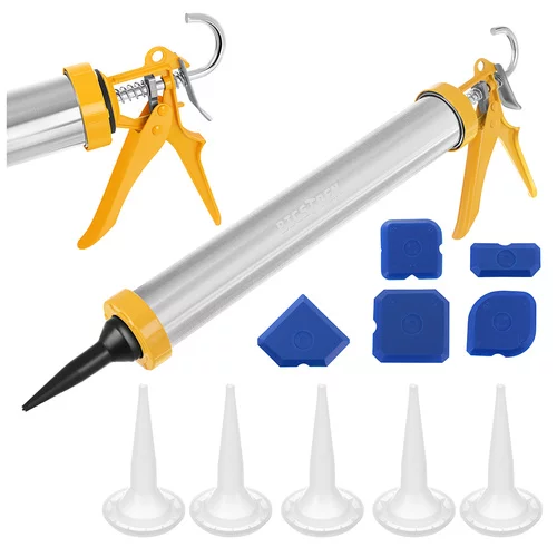 Gładkie i precyzyjne nakładanie silikonów i mas uszczelniających nigdy nie było prostsze. Pistolet do wyciskania umożliwia szybkie i równomierne dozowanie materiału bez smug i nierównych spoin. Dołączone dysze i szpachelki umożliwiają natychmiastowe wygładzenie i osiągnięcie profesjonalnego wyniku podczas uszczelniania w domu i w pracy. Ergonomiczny spust i solidna metalowa konstrukcja zapewniają komfort i stabilność nawet przy dłuższym użytkowaniu.