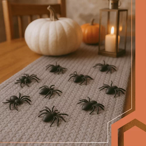 Zestaw dziesięciu realistycznych czarnych pająków z lekkiego i wytrzymałego materiału plastikowego jest idealny do stworzenia strasznej atmosfery na Halloween, tematyczne imprezy lub dekoracji wnętrz i ogrodu. Pająki doskonale sprawdzą się na pajęczynach, dekoracjach stołowych, scenografii lub żartach, przynosząc zabawę i niespodzianki na każdą okazję.