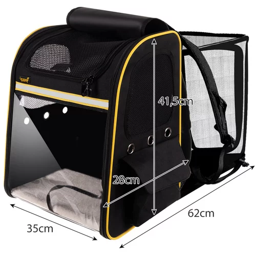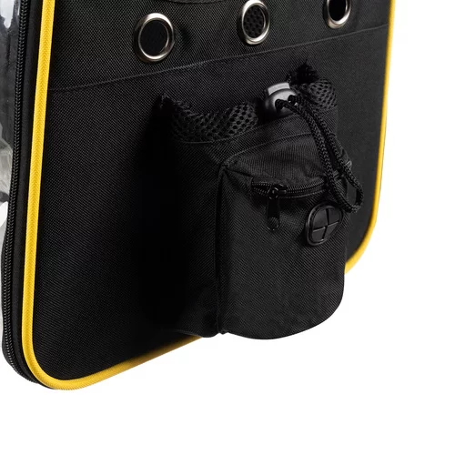 Praktyczny i bezpieczny plecak umożliwia wygodne transportowanie psa, kota lub królika. Zapewnia wystarczające wentylację dzięki siatkowym oknom i przezroczystej przedniej folii, aby zwierzę mogło obserwować otoczenie. Wzmocniona konstrukcja i miękka wkładka zapewniają stabilność i komfort podczas podróży, podczas gdy boczne kieszenie oferują miejsce na napój, przekąski lub drobne akcesoria. Idealny towarzysz na wycieczki i wspólne przygody.
