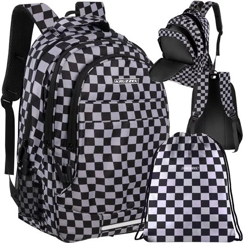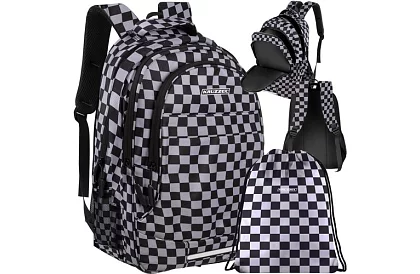 Praktyczny i wytrzymały plecak odpowiedni do szkoły, sportu i codziennego noszenia, który łączy funkcjonalność, komfort i wyraźny kraciasty design. Wysokiej jakości materiały, wyściełane plecy i przemyślane wewnętrzne podziały zapewniają wygodne noszenie i bezpieczne przechowywanie książek, zeszytów i elektroniki. W zestawie znajduje się również torba na obuwie lub WF, dopasowana do stylu plecaka.