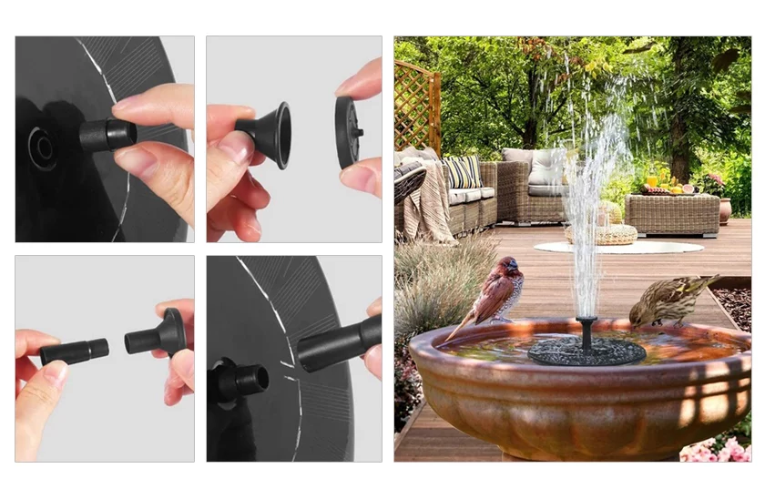 Możesz pozwolić fontannie unosić się swobodnie lub zamocować ją w jednym miejscu za pomocą przyssawek, które znajdują się na dnie. Fontanna działa automatycznie w bezpośrednim świetle słonecznym, więc nie ma potrzeby jej włączania i wyłączania.