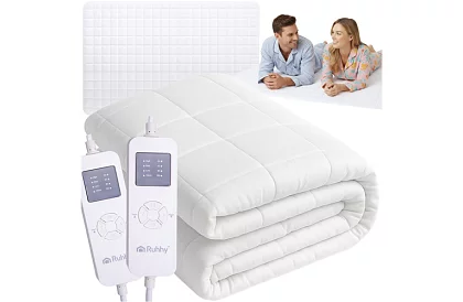 Maksymalny komfort i relaks oferuje podgrzewana mata RUHHY z dwoma strefami, która łączy ciepło, bezpieczeństwo i oszczędność energii. Dzięki systemowi dwustrefowemu każdy użytkownik może ustawić własną temperaturę, która mu odpowiada, a jednocześnie można skorzystać z różnych poziomów regulacji temperatury i funkcji timera dla indywidualnego dostosowania. Miękka, przyjazna dla skóry tkanina zapewnia przyjemny kontakt i komfort podczas odpoczynku. Mata jest wyposażona w ochronę przed przegrzaniem i automatyczne wyłączanie, co czyni ją bezpieczną i niezawodną w codziennym użytkowaniu.