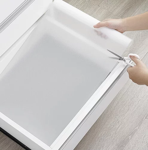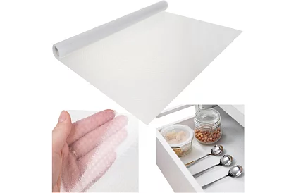 Mata antypoślizgowa zapewnia, że wszystkie przedmioty w Twoich szufladach pozostaną na swoim miejscu, a powierzchnie będą chronione przed zarysowaniami i uszkodzeniami. Dzięki swojej długości i szerokości możesz użyć jej w całości lub pokroić na mniejsze części do więcej szuflad. Uniwersalny materiał plastikowy jest odporny, łatwy w utrzymaniu i odpowiedni do różnych powierzchni – szkła, drewna, ceramiki czy plastiku.