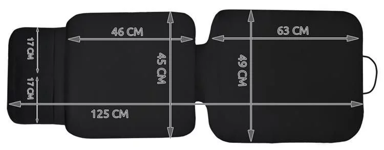 Podkładka do fotelika samochodowego jest idealna do ochrony tapicerki i utrzymania czystości w samochodzie. Górny perforowany poliester umożliwia szybki przegląd zawartości kieszeni, dolna część zapewnia wodoodporną ochronę. Podkładka jest odpowiednia dla większości fotelików samochodowych (w kierunku jazdy i przeciwko kierunkowi jazdy), w tym fotelików ISOFIX. Łatwy montaż dzięki elastycznej taśmie na zagłówku.