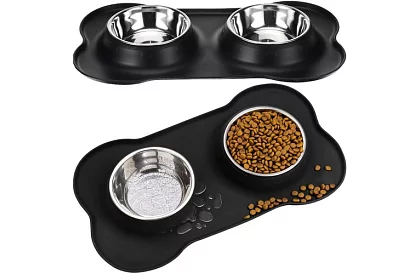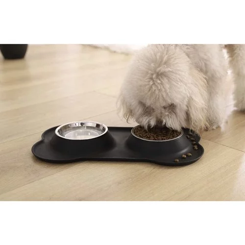 Praktyczne i czyste rozwiązanie karmienia, które przynosi wygodę dla zwierzęcia i porządek w domu. Kombinacja dwóch stalowych misek i stabilnej silikonowej podkładki pozwala mieć pokarm i wodę w jednym miejscu, bez przesuwania, rozlewania i bałaganu wokół.