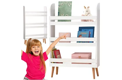 • Trzy przestronne poziomy półek na książki, gry, klocki i pluszowe zabawki