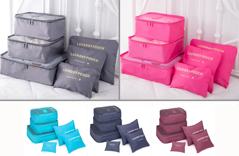 Nie martw się pakowaniem na wakacje. Kup zestaw sześciu organizerów do walizki, które w doskonały sposób zorganizują ubrania, kosmetyki i inne przedmioty znajdujące się w Twojej walizce.
